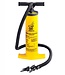 This double action air pump inflates and deflates towables, kayaks, boats, airbeds, and other inflatables. It delivers a continuous stream of air on both the up and down strokes. Simply turn the release valve counter-clockwise and you're pumping air only on the down-stroke. This is a great option when your inflatable is almost full and there's back pressure. Four universal valve fittings are included to fit Boston valves and stem valves. The accordion-style hose stretches to 5 ft. long and interlocks to the pump, so that it doesn't fall off while you're pumping. Volume is 2 liters / stroke. Very effective for "topping off" large towables in the boat, since peak pressure is an impressive 14 psi.