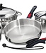 Made of 100% 18-8 mirror polished Stainless Steel, Magma’s award-winning cookware sets are compatible with all stove types, including induction. Sets completely nest and store in less than ½ cu. ft. of cabinet space. The encapsulated Triple-Clad bottoms are milled perfectly flat for superior even heat distribution. The triple clad bases outer layer uses the highest quality ferromagnetic stainless steel, specifically used to activate the magnetic field in all Induction cooking surfaces. 10 Piece set includes: 5 qt. Stock Pot, 10 in. diameter Sauté/Frying Pan, 3 qt. sauce pan, 2 qt. Sauce Pan, 1-½ qt. sauce pan, lid that fits all saucepans, a lid for Sauté/Frying Pan/Stock Pot, (2) removable handle, and a convenient bungee storage cord. Cookware is oven safe to 500° F and dishwasher friendly (excluding removable handles).