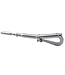 Inexpensive, slender tubular design with a stamped hook. 4 3/4" long from end of body to inside bearing point of hook.