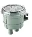 Cooling water strainer with transparent cover for easy inspection of the filter content.